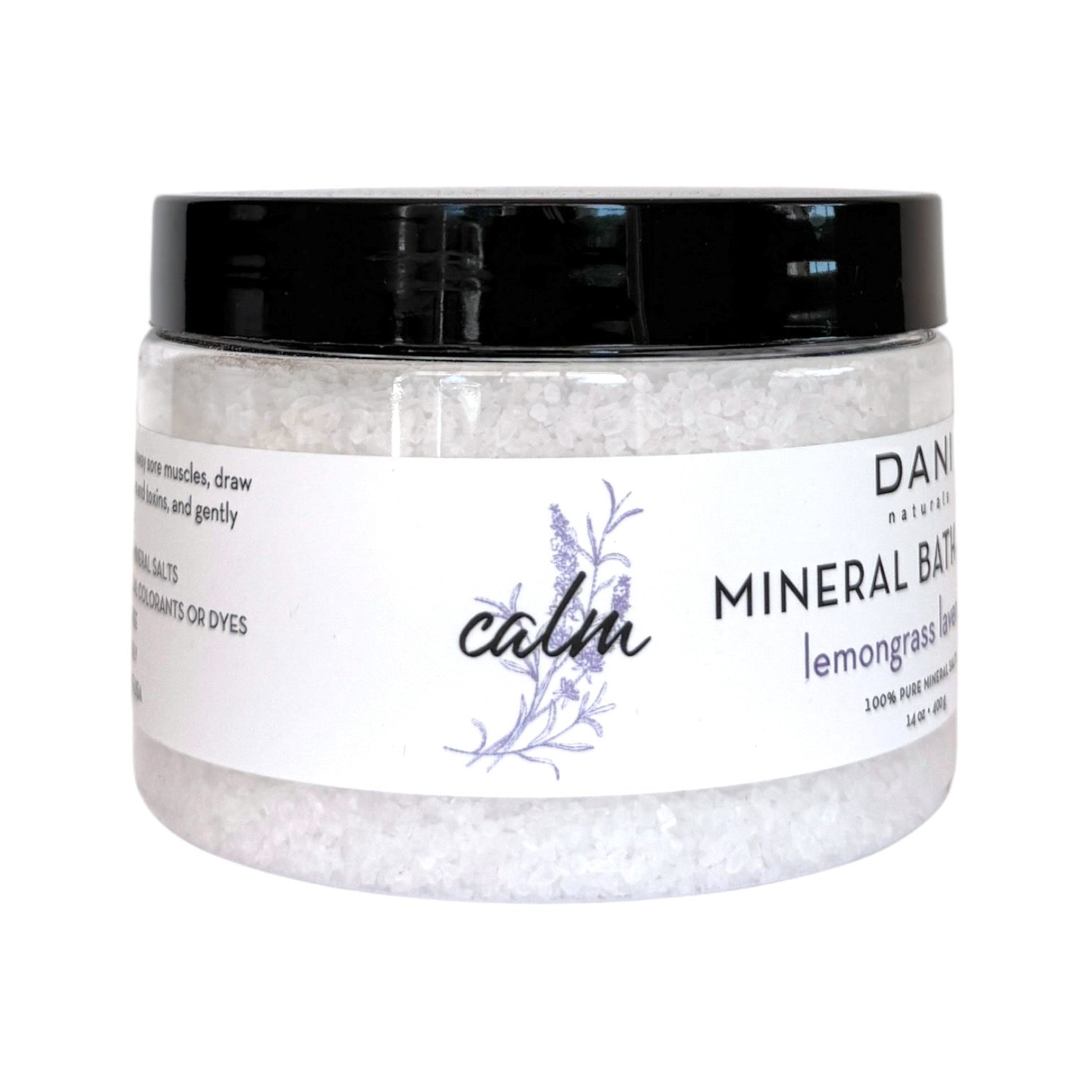 DANI Naturals Mineral Bath Soak is perfect for sore muscles and tired feet. It draws out impurities and toxins, while gently moisturizing your skin; made with 100% mineral bath salts and our custom essential oil blends to create a rejuvenating bath soak.
