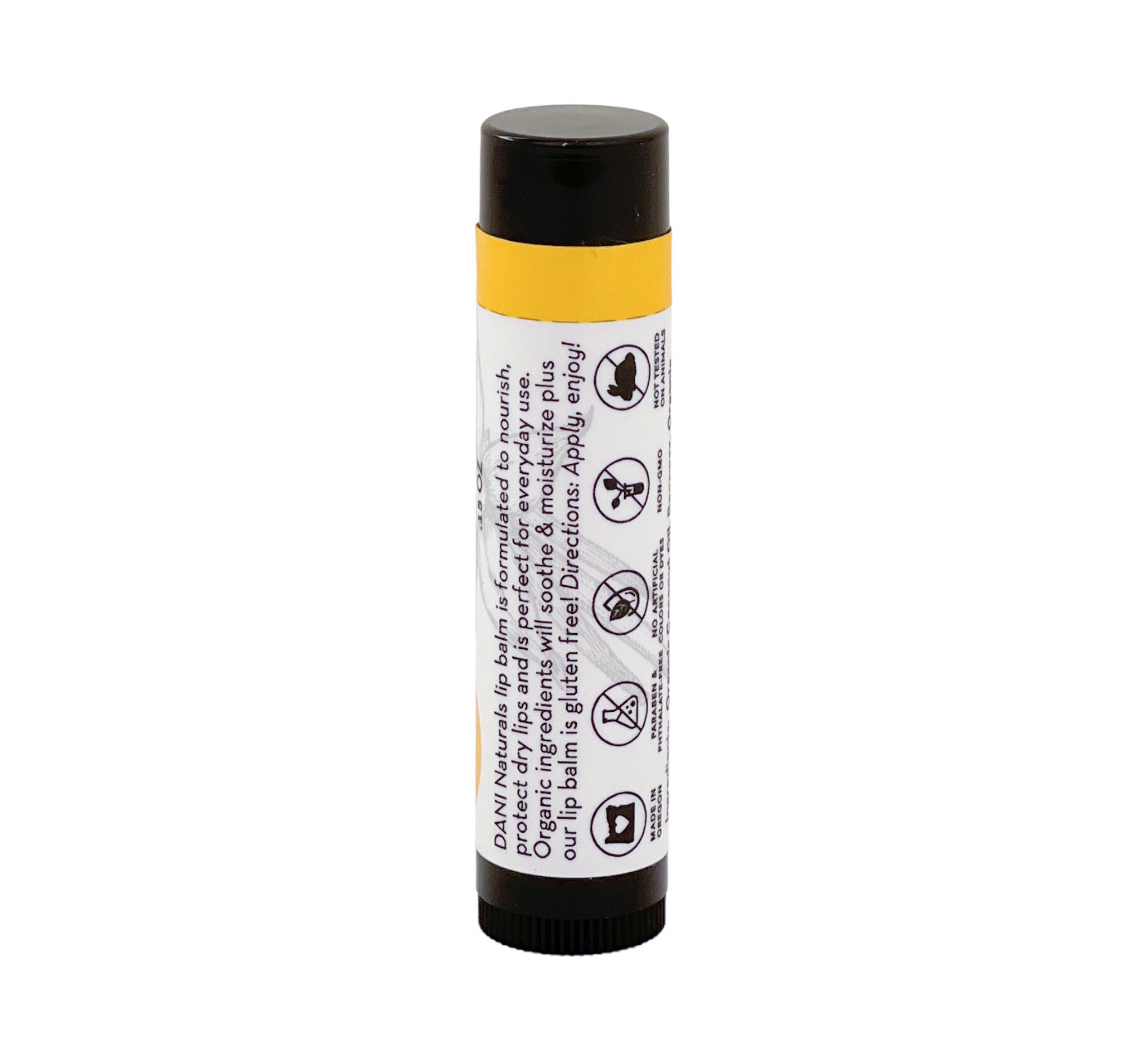 DANI Naturals Lip Balm is formulated to nourish and protect dry lips - perfect for everyday use. Made with natural and organic ingredients, our lip balm soothes and moisturizes plus is gluten-free!